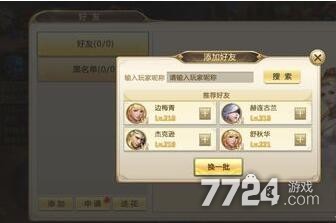 2、点击添加好友功能,会弹出添加好友框,可输入玩家昵称添加,同时在这个界面上也会给好友推荐一些好友