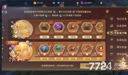 以上就是精灵盛典狂欢手册玩法介绍,你还可以继续通过7724精灵盛典专区,免费领取海量钻石,免费领取各种时装,查看各个职业培养技巧,各种副本通关技巧等等。